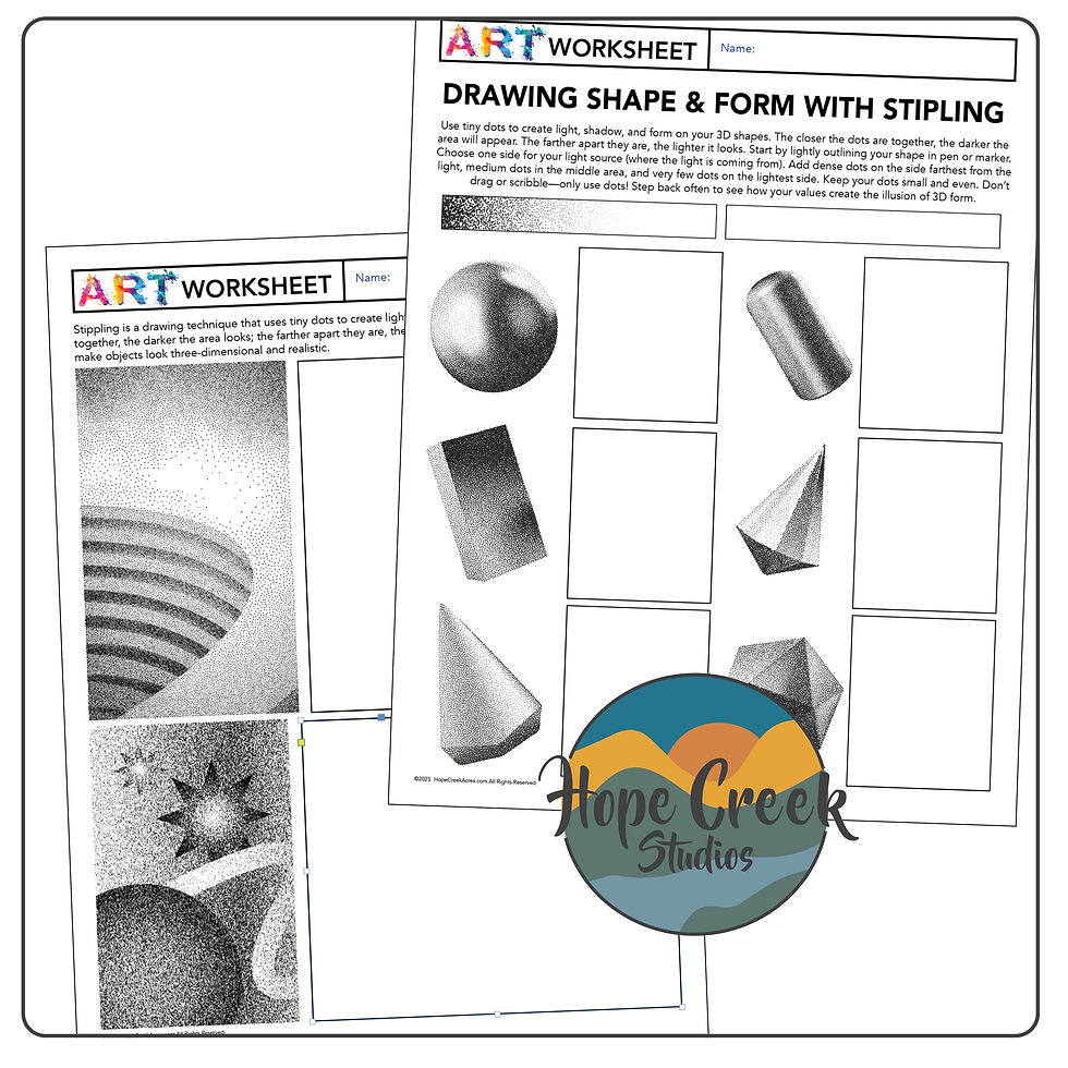 Here at Hope Creek Studios our mission is to share our love of art through our lesson plans, Blog - Create&Learn, and graphic design services. We have two talented teachers and designers who enjoy being creative while learning and sharing with others.